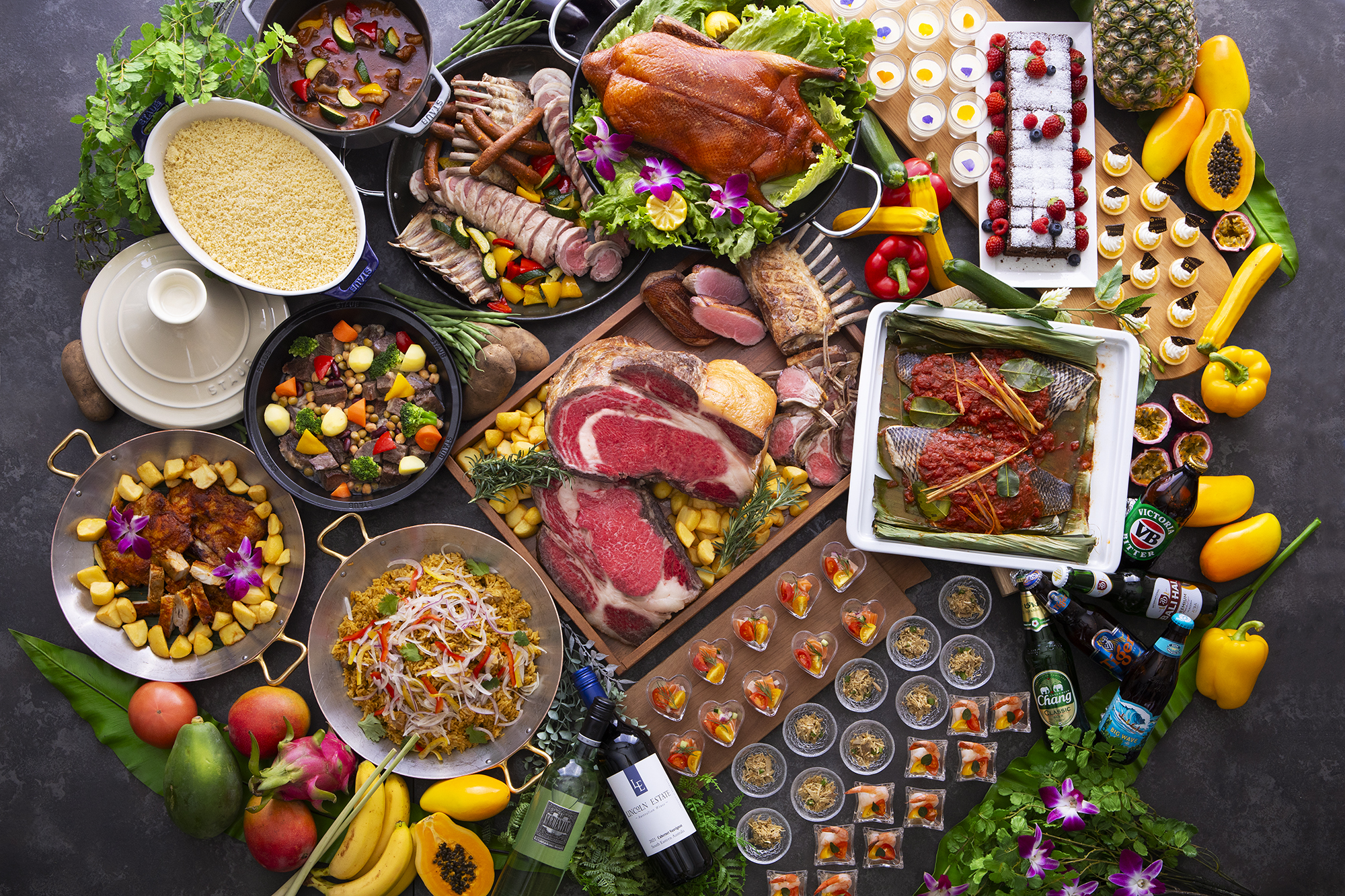 黒毛和牛ローストビーフ、牛タンのグリルや北京ダック、